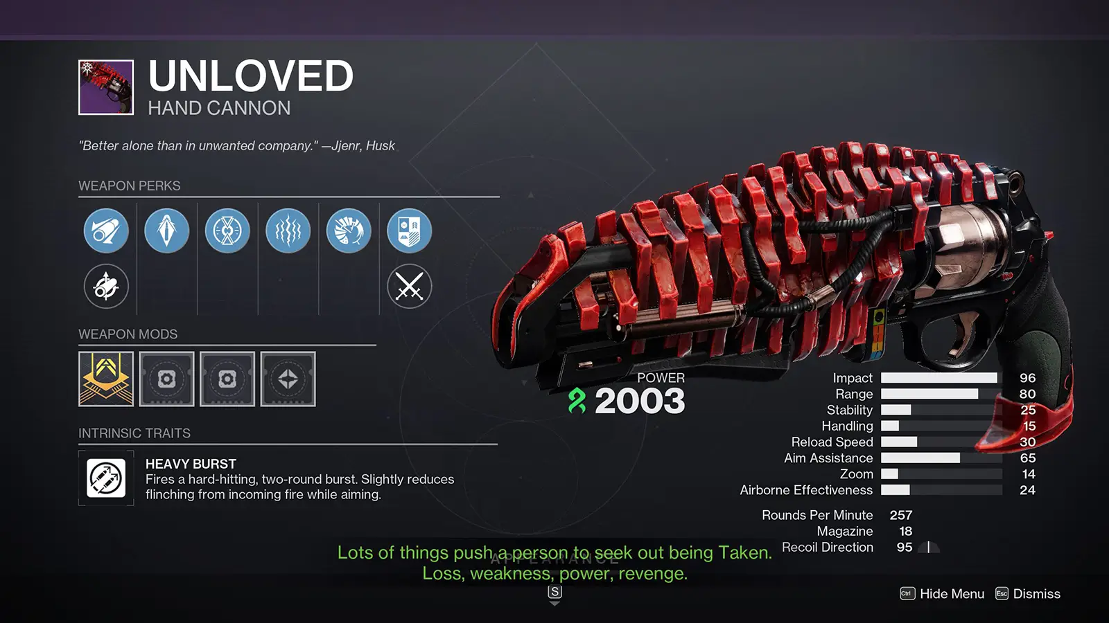 - Weapon type: Hand Cannon