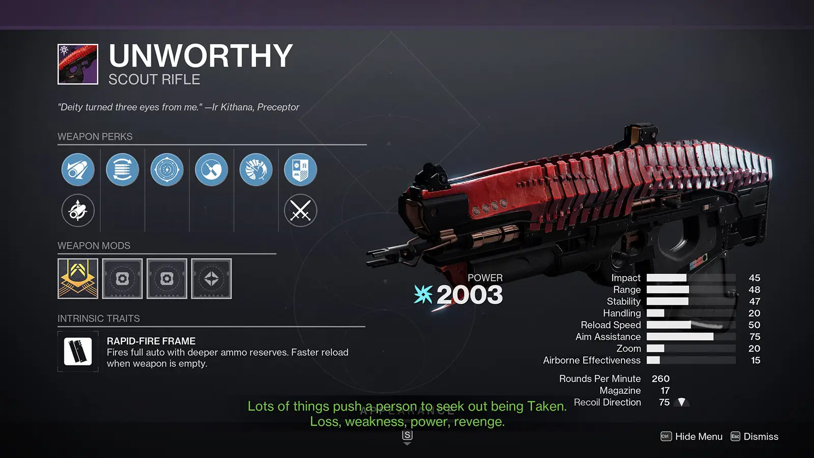 - Unworthy Scout Rifle