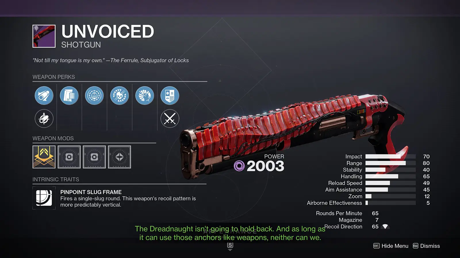 Unvoiced | Shotgun | Special | Sundered Doctrine Dungeon | No | The Final Shape Dungeon Key | |