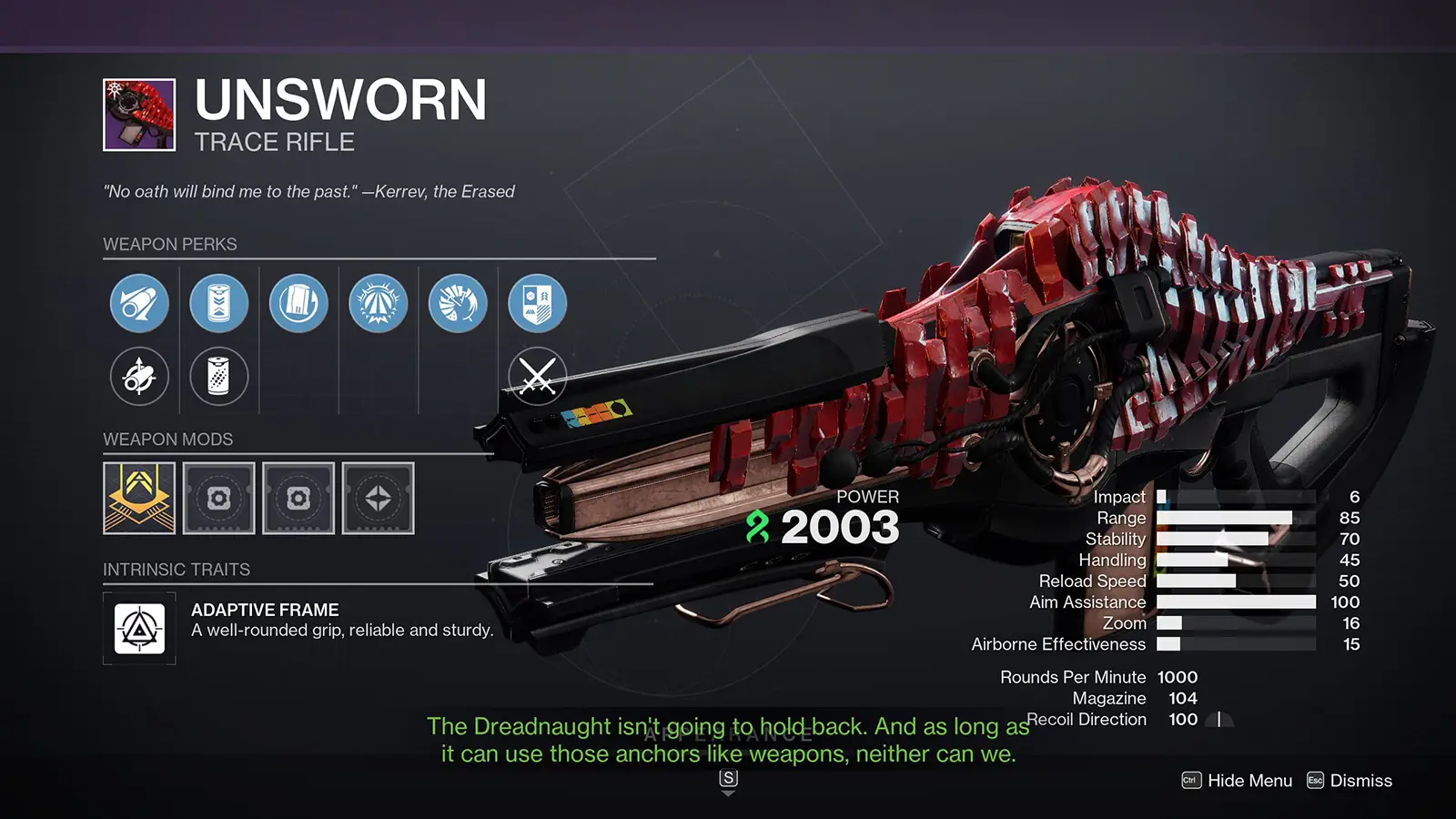 - Unsworn Trace Rifle
