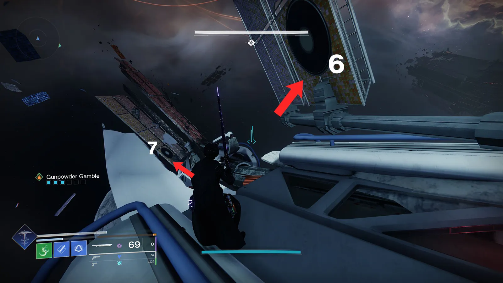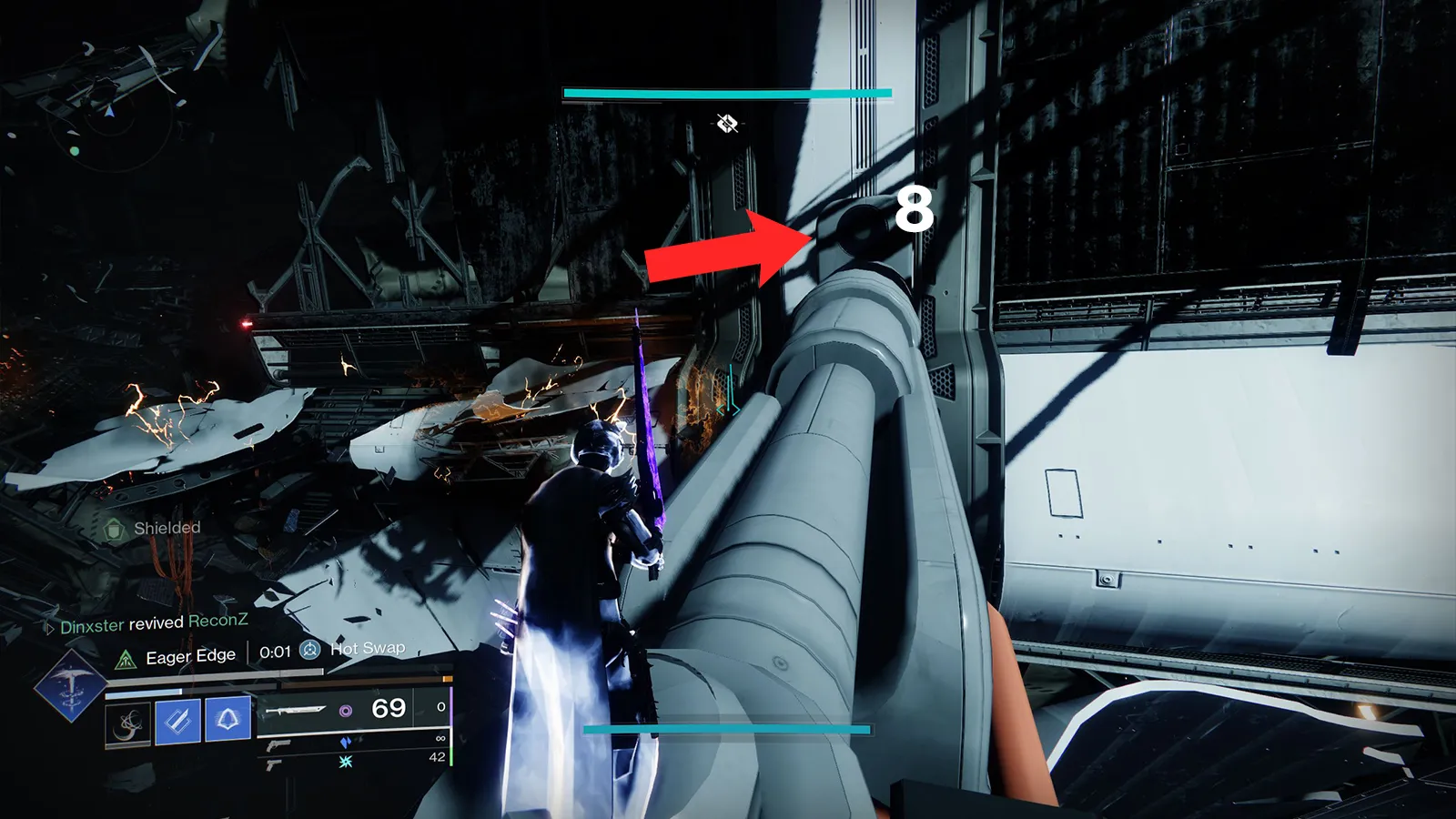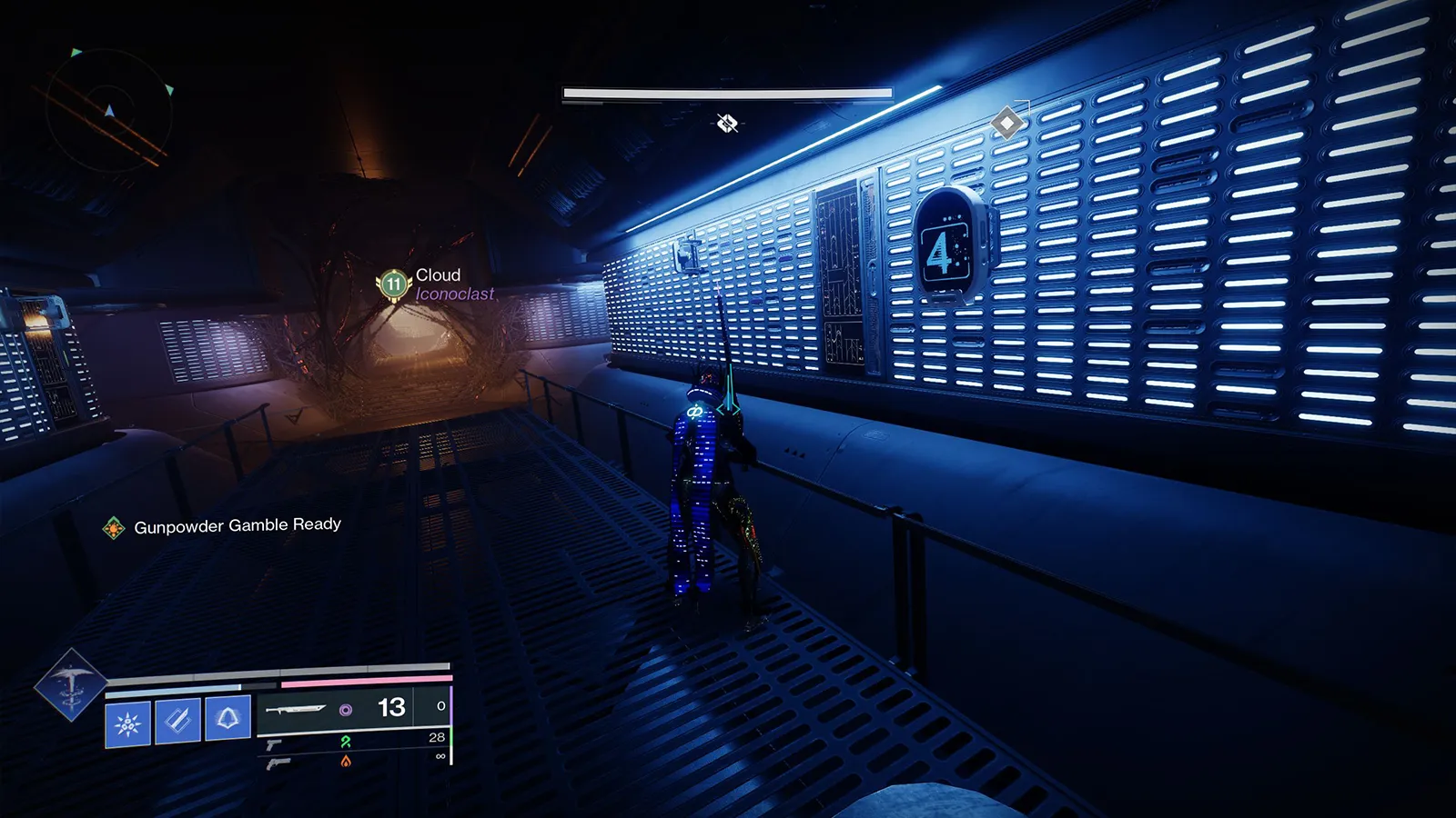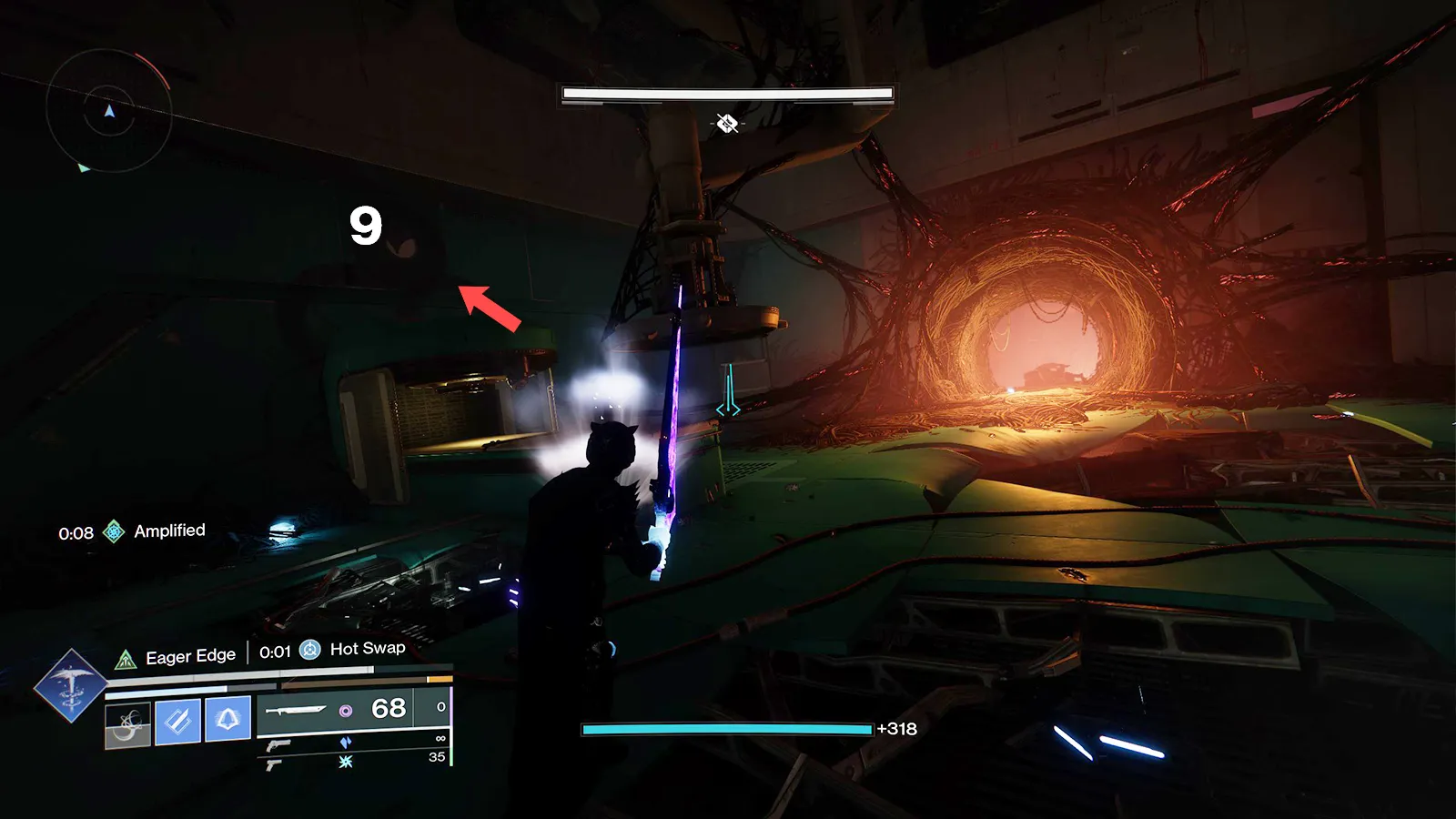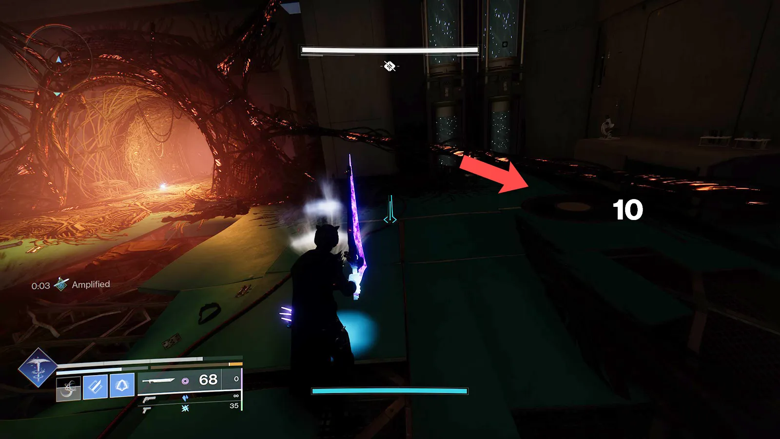 - Enter the Heart Room. Once inside, proceed to the blue room. You’ll notice panels that can be shot using the Operator augment, now displaying several red numbers.
