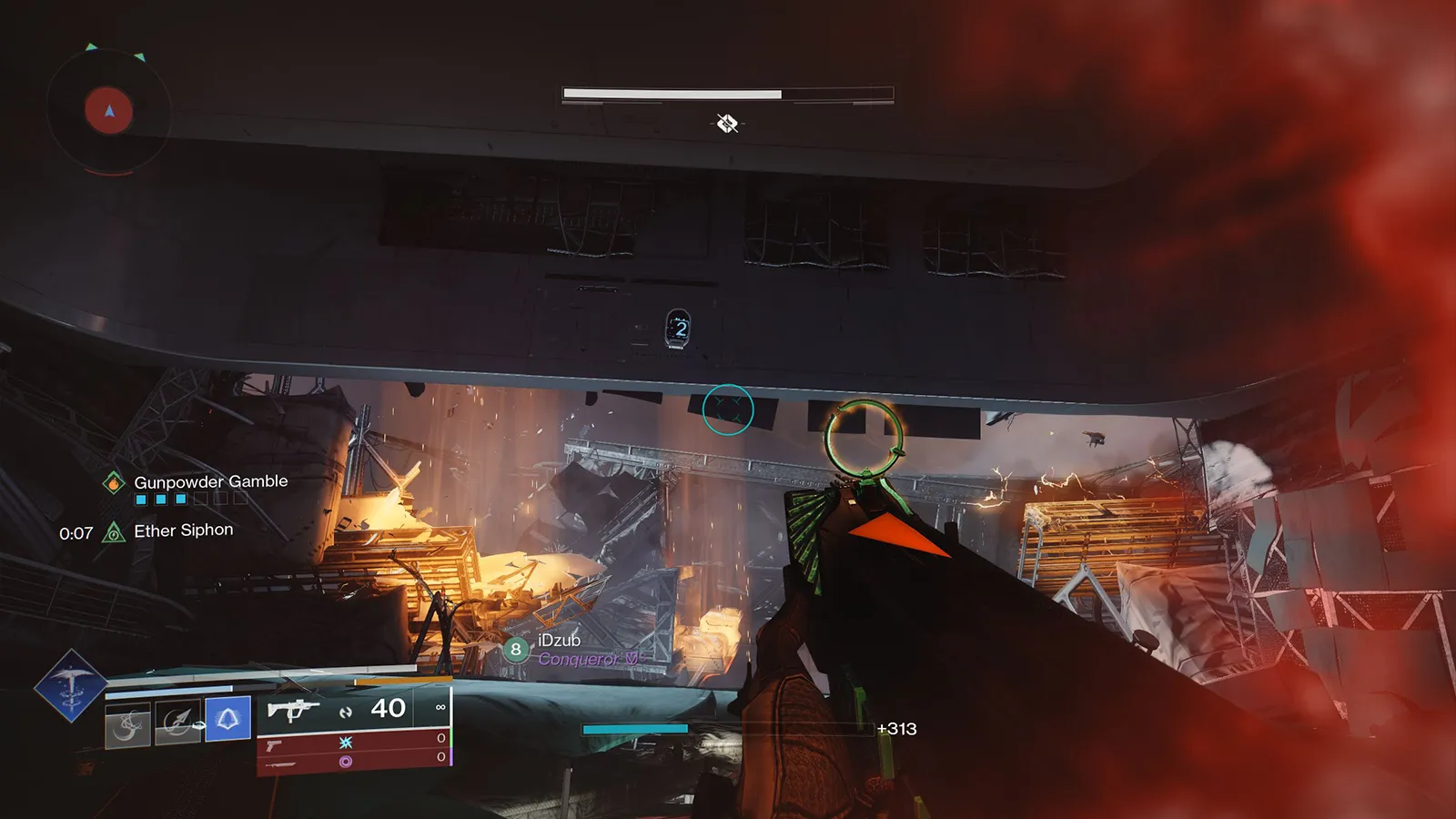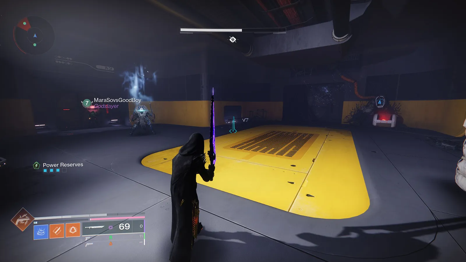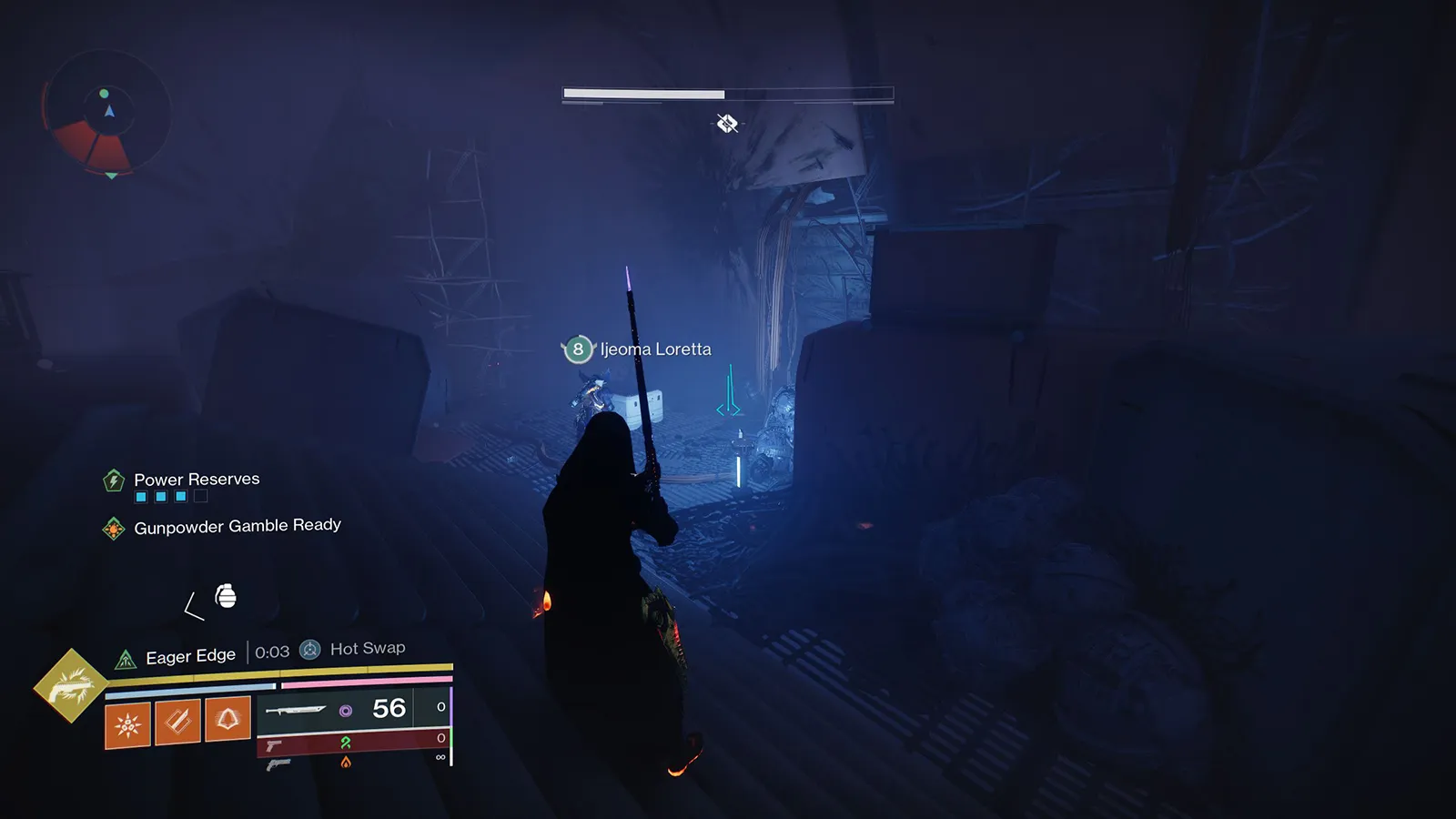 Once you’ve taken down the Machine Priest, move ahead and jump on the stationary platforms. Look for a Scanner and an Operator augment on one of the hollow platforms. Pick up the augments, and use the Operator augment to shoot the panels that disappear from the Scanner’s map. Keep doing it until you receive an Ascendant Alloy reward.