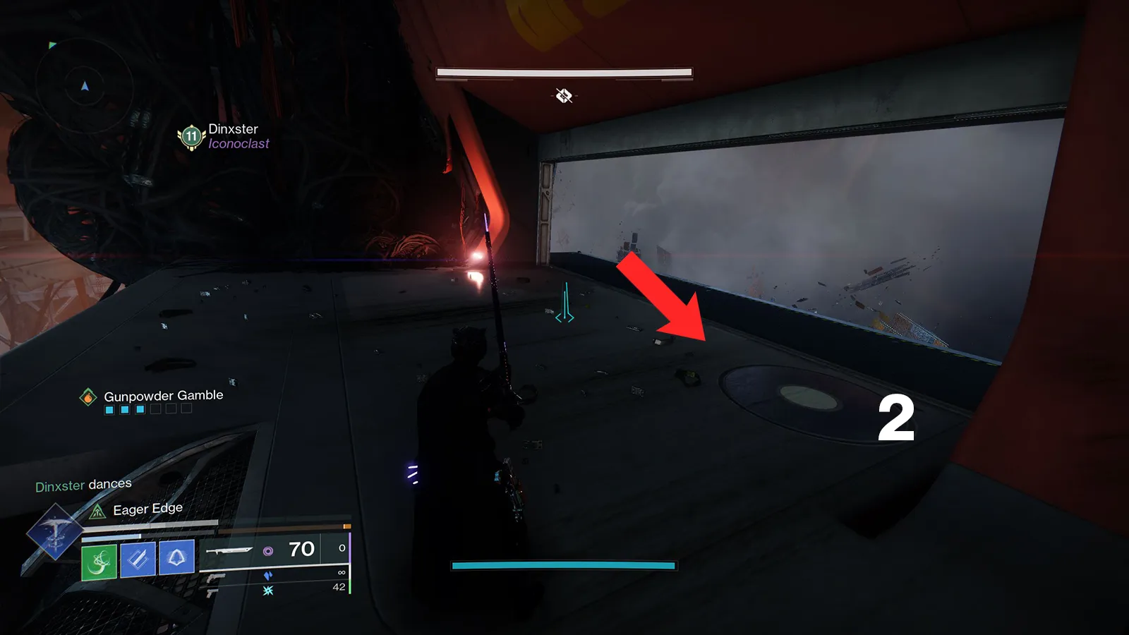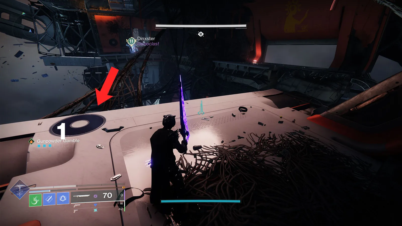 - Once the encounter is cleared, you’ll gain access to the Heart Room, leading you to a large blue room filled with black plates, each with a small white circle in the center.