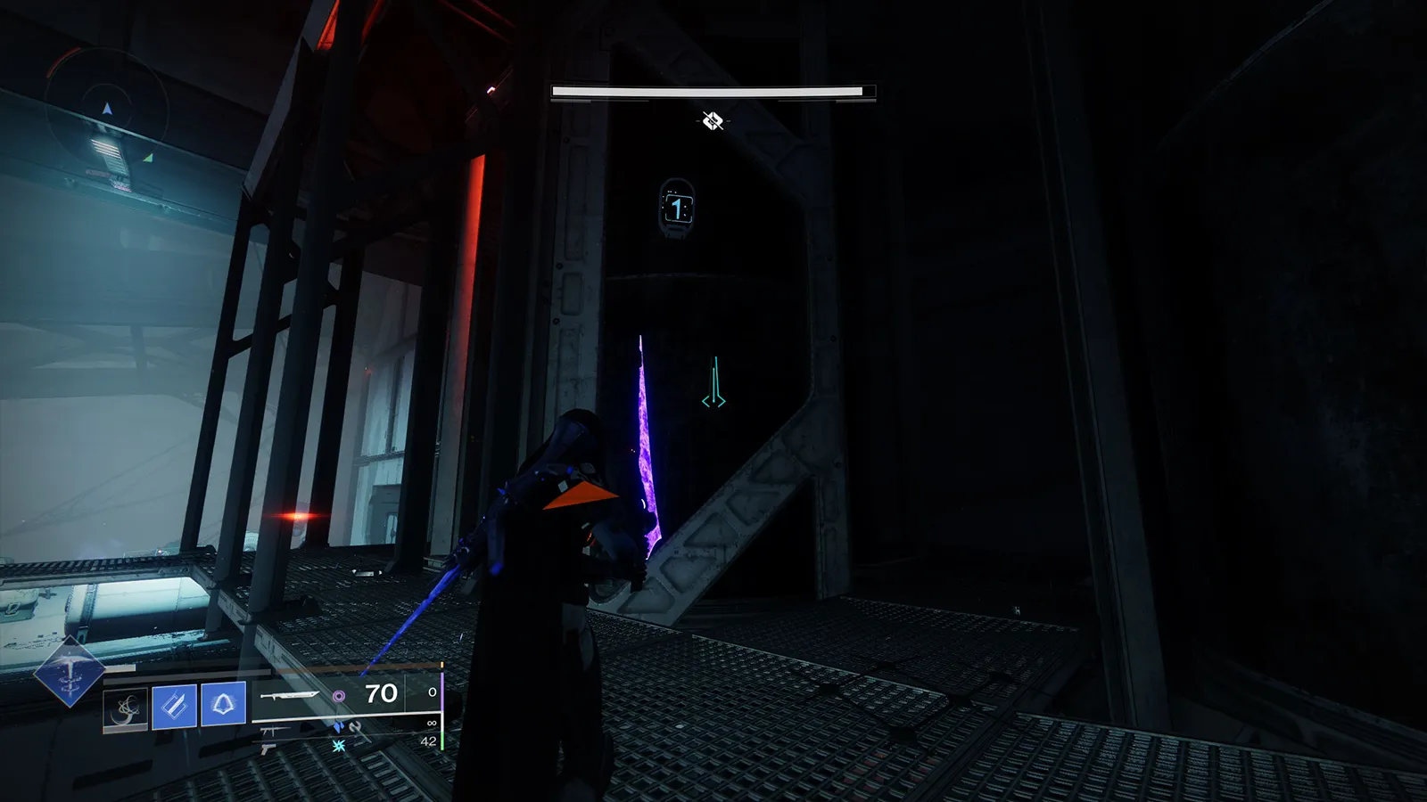 - Third Panel: After the second encounter, at the start of the main jumping puzzle, you’ll come across this panel. Defeat the Fallen Brig, jump onto the next platform, then turn around and you’ll see this panel on one of the large cylinders. Shoot the panel to activate it.