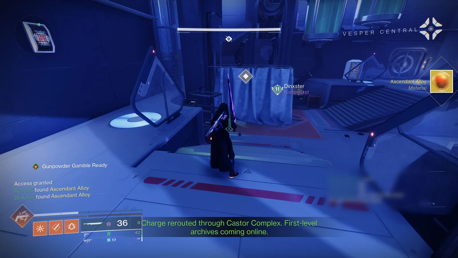 - Once all plates are activated, you’ll see a message on your HUD that says, “Access granted,” and you’ll receive an Ascendant Alloy as a reward.