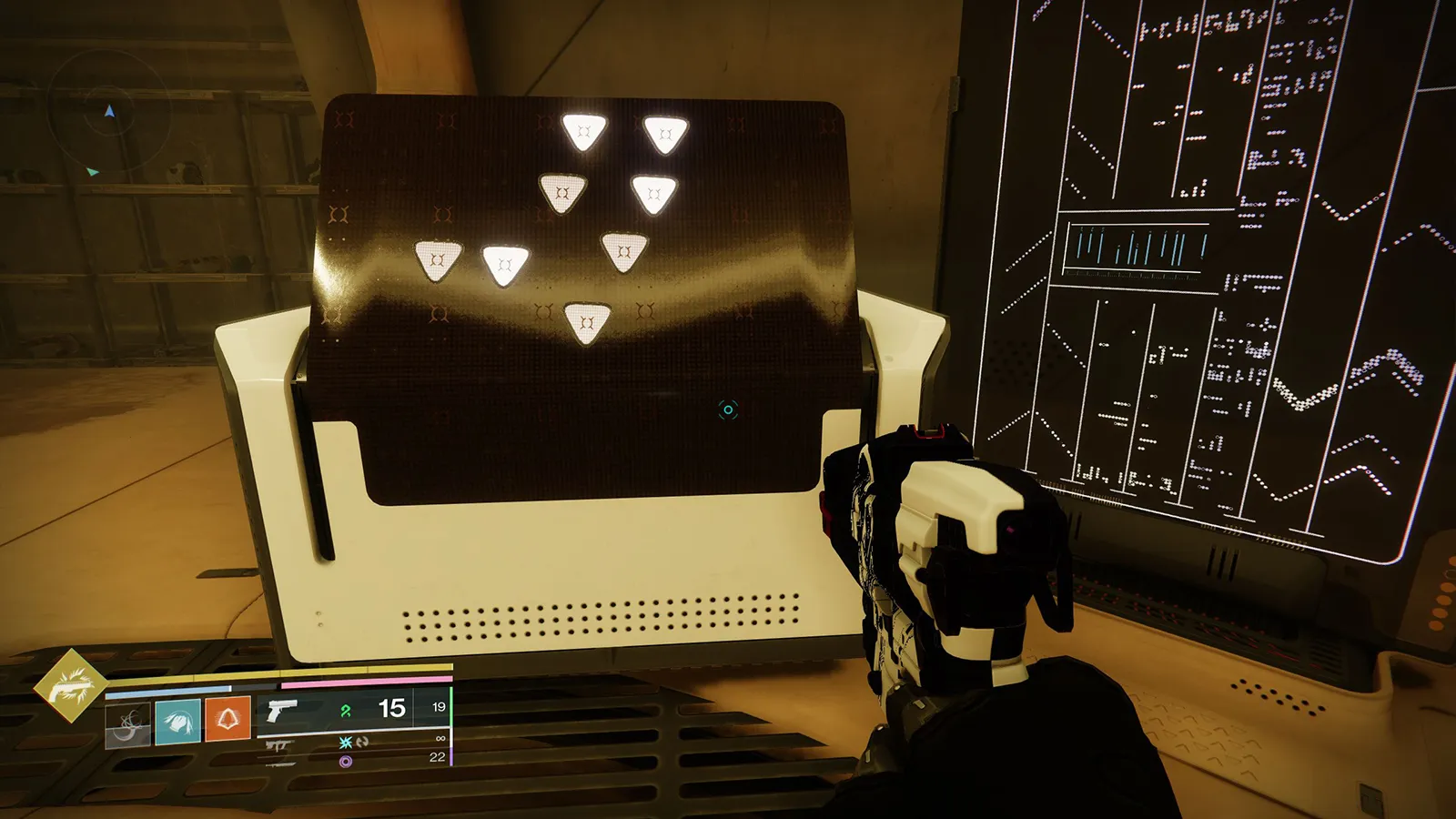 Like the previous step, the Operator must shoot the panels that disappear from the Scanner’s map. Continue activating the panels until you receive an Ascendant Alloy as a reward. Once you’ve completed this, return to the Augment area, where a datapad will have appeared on the wall.
