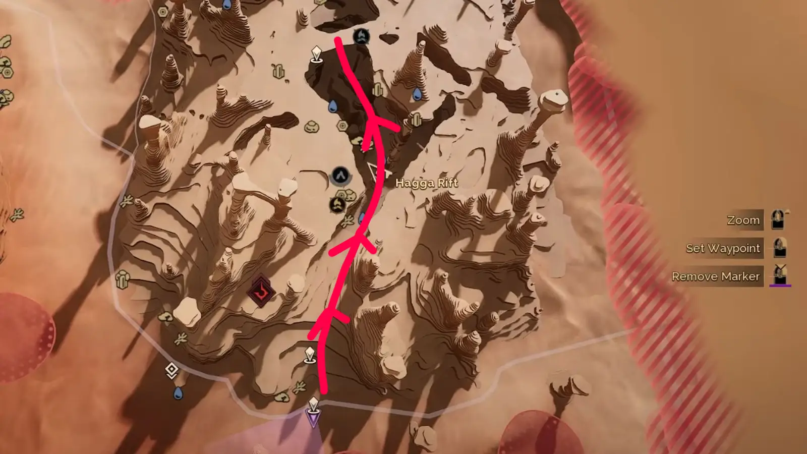 If you want to farm Erythrite Crystal fast, the Hagga Rift is by far the best spot in the game. You’ll want to enter from the east side of Vermillius Gap, using the Riftwatch entry point. Once you’re inside the rift, head down the slopes and keep an eye out for crashed Ornithopters and big cave structures.